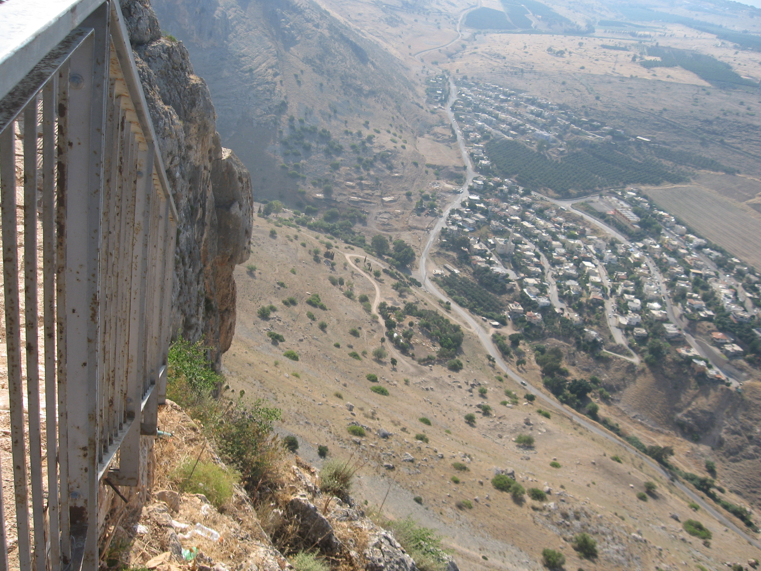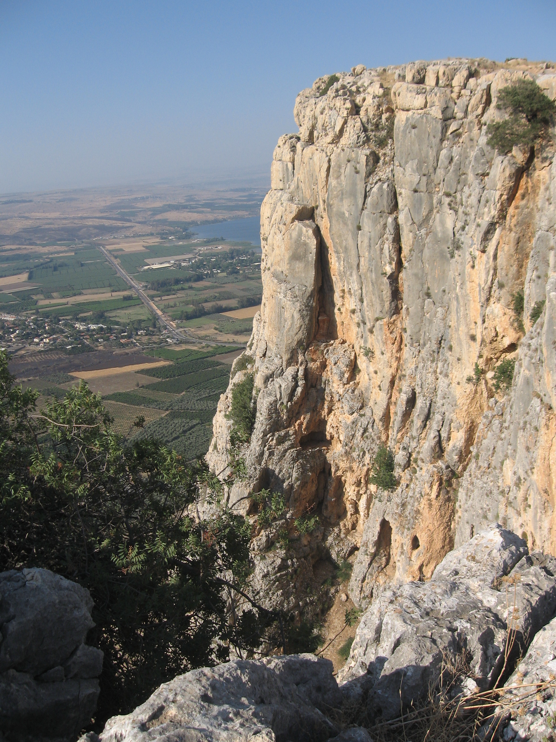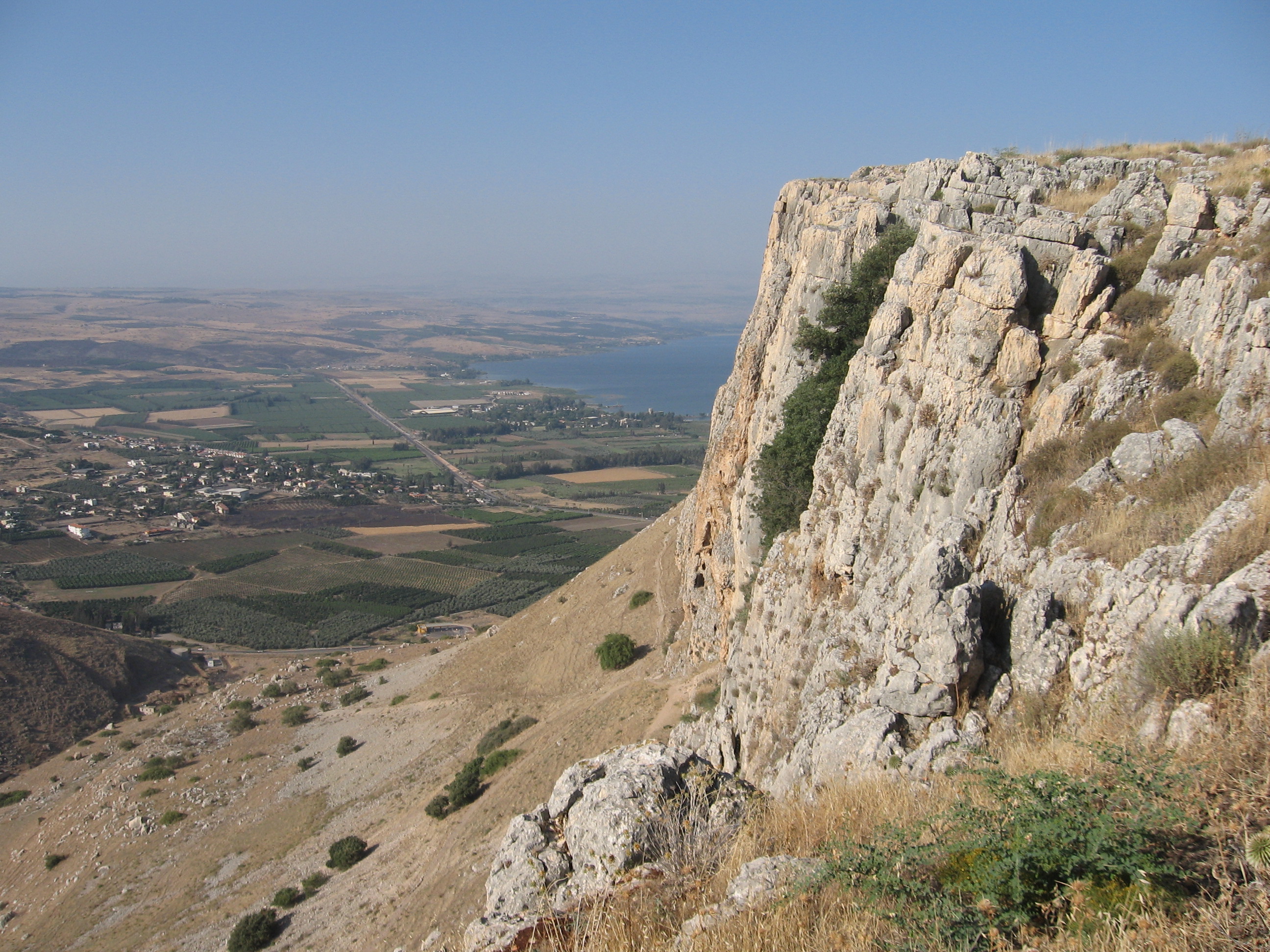 Elevation 594 feet above sea level and 1283 feet above the Sea of Galilee. The cliff of Arbel overlooks the Sea of Galilee and provides an excellent panorama of the Sea and the plain of Gennesaret. Below the villages on the shore of the Sea of Galilee can be seen.