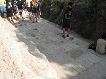 Notice the water flowing along the floor of Hezekiah's tunnel