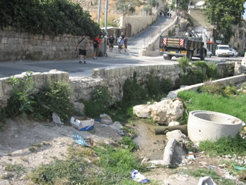 The traditional site of the Pool of Siloam which in 2004-05 was discovered to be a channel to continue the flow of water to a much larger pool.
