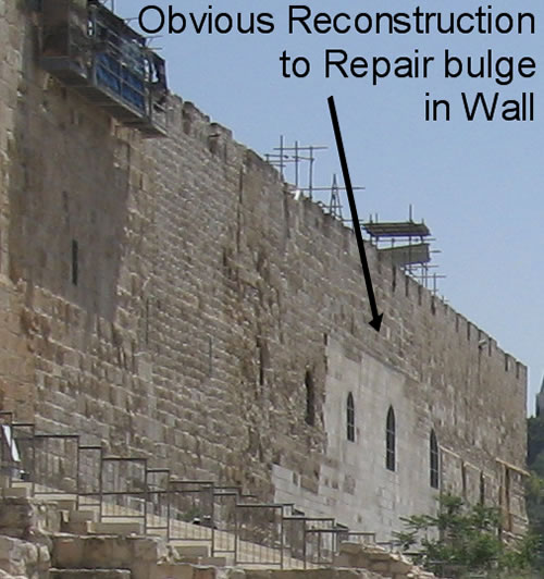 Further down, the wall began to bulge out around 2001 AD due to Muslim construction under the temple mount.