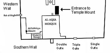 The dark rectangle marked "Entrance to Temple Mount" would be where Jews would have emerged on the temple mound after they entered the tunnel coming up from the Double Gate. There would have also been stairs and an entrance like this for the Triple Gate.