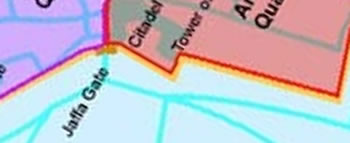 Inside the Joppa Gate on the west side of the city is the location that alwyas served as the fortress. Here is the base of one of the three towers Herod had built here to defend the city on this western ridge that has a natural defense from the Hinnom Valley to the west and the south.