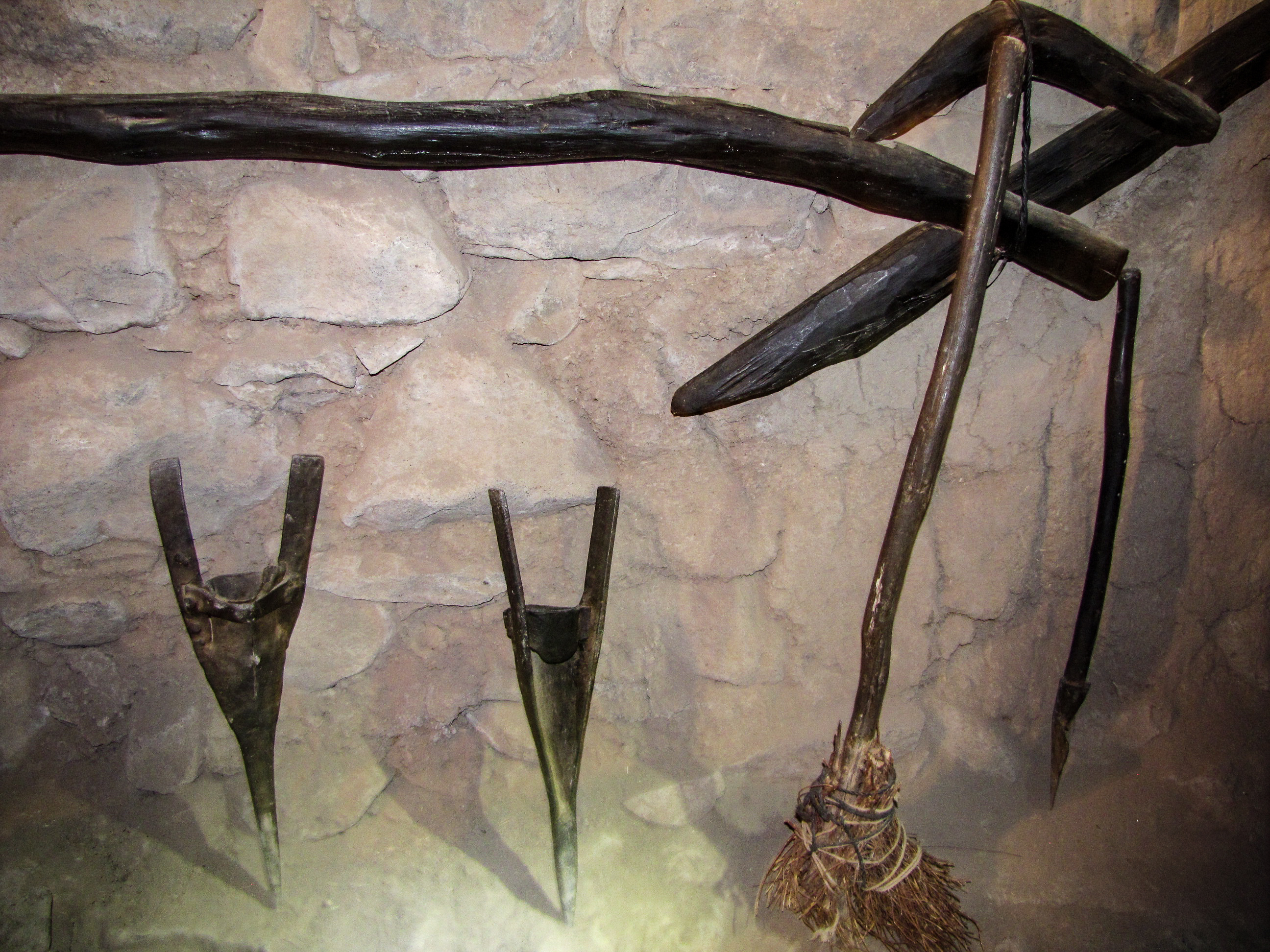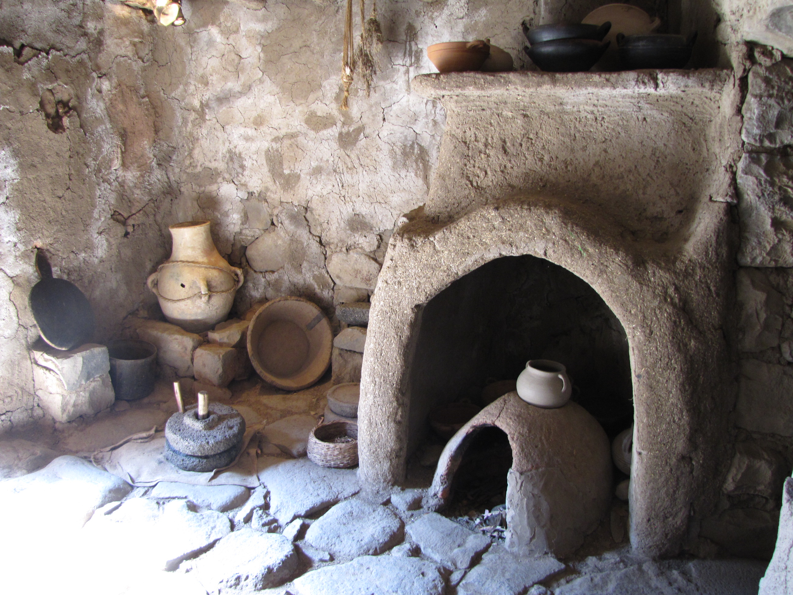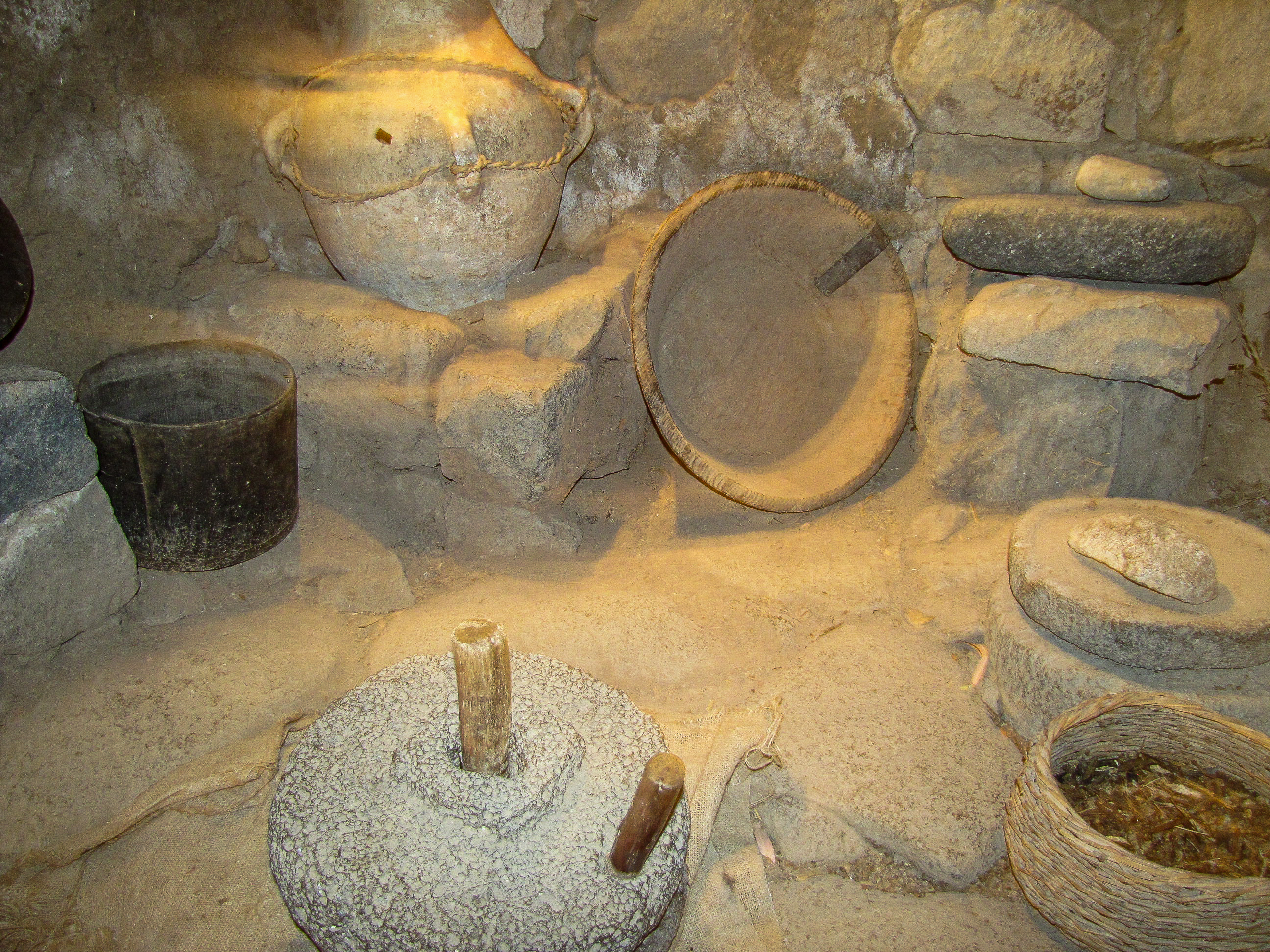 An olive press is in the back that was used to press the olive oil out of the crushed olives and seeds from the grinder. |