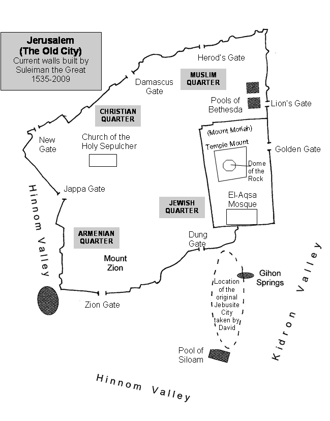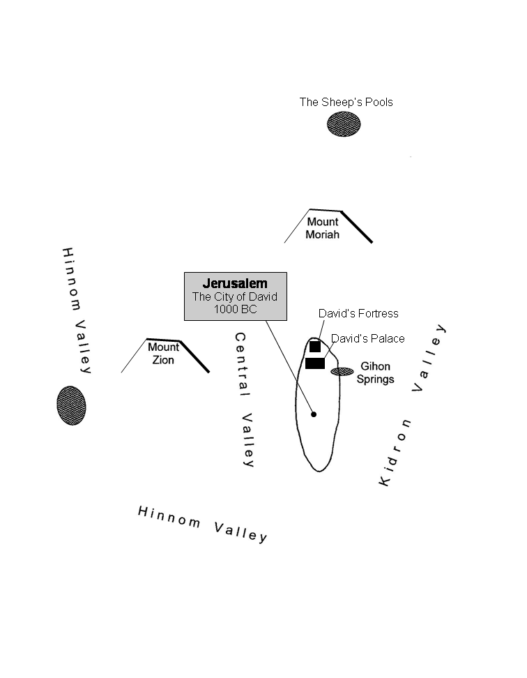 In 1010 Saul is killed in battle against the Philistines on Mt. Gilboa. David is asked to return to his tribe and serve as the king of Judah in the city of Hebron. The other eleven tribes are still devastated from the Philistine invasion and have Ish-Bosheth, the surviving son of Saul, in place as their king. David reigned in Hebron as king of Judah for 7 ½ years. After the assassination of Ish-Bosheth the other eleven tribes of Israel came to David and gave him their kingdom. David’s first move was to conquer the never defeated Jebusite stronghold, the fortress city of Jerusalem. From this new centralized capital, on the southern side of Mt. Moriah where Abraham had offered Isaac, David established the kingdom of the unified Israel and reigned from Jerusalem for the next 33 years (2 Samuel 5:3-5; 5:6-10). David will reign for a total of 40 years (1010-970 BC).