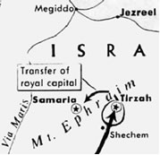 After rebuilding and reigning for six years in the burnt out capital of Tirzah, Omri bought the hill of Samaria eight miles to the west for 150 pounds of silver and built a new capital city on it called Samaria. Omri had a son he named Ahab who became one of Israel’s most notorious kings. Omri’s dynasty placed four kings on the throne of Israel and also married a royal daughter into the line of David’s in Judah.