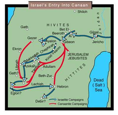 The land of the Canaanites was taken by Joshua and Israel in a five year war (1405-1400 BC) that included four basic campaigns.