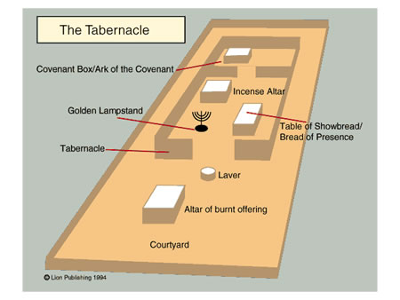 The Mosaic Covenant also included a priesthood and a sanctuary called the tabernacle. The tabernacle was a tent with symbolic furniture used in ritual worship set up according to the plan shown to Moses by God.