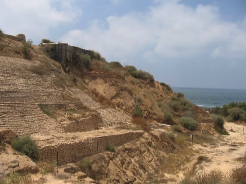 The Rampart that surrounded Ashkelon. This design is called a glacis and was covered with a very smooth, polished finish that made it impossible to climb by the enemy. A large wall would have stood at the top.