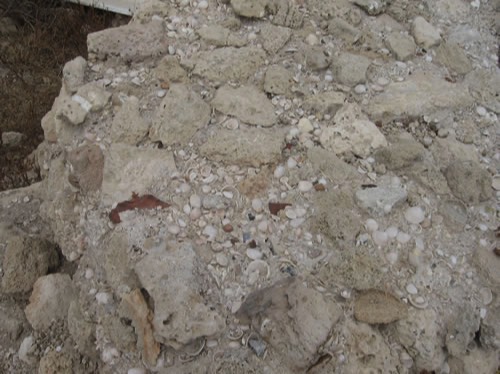 You can see the mortar mixed with shells that the Philistines used to build their walls.