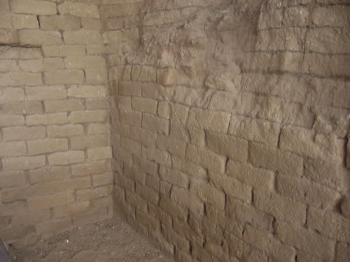 Original mud bricks inside the city gate.