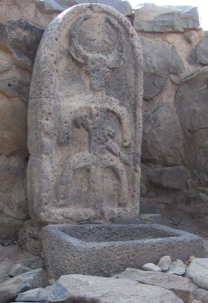 The high place of worship is on the right side (north side) with a stella of the storm god Hadad (a deity worshipped in Aram, just to the north of Israel) portrayed as a standing bull-headed image on a tripod wearing a sword.
