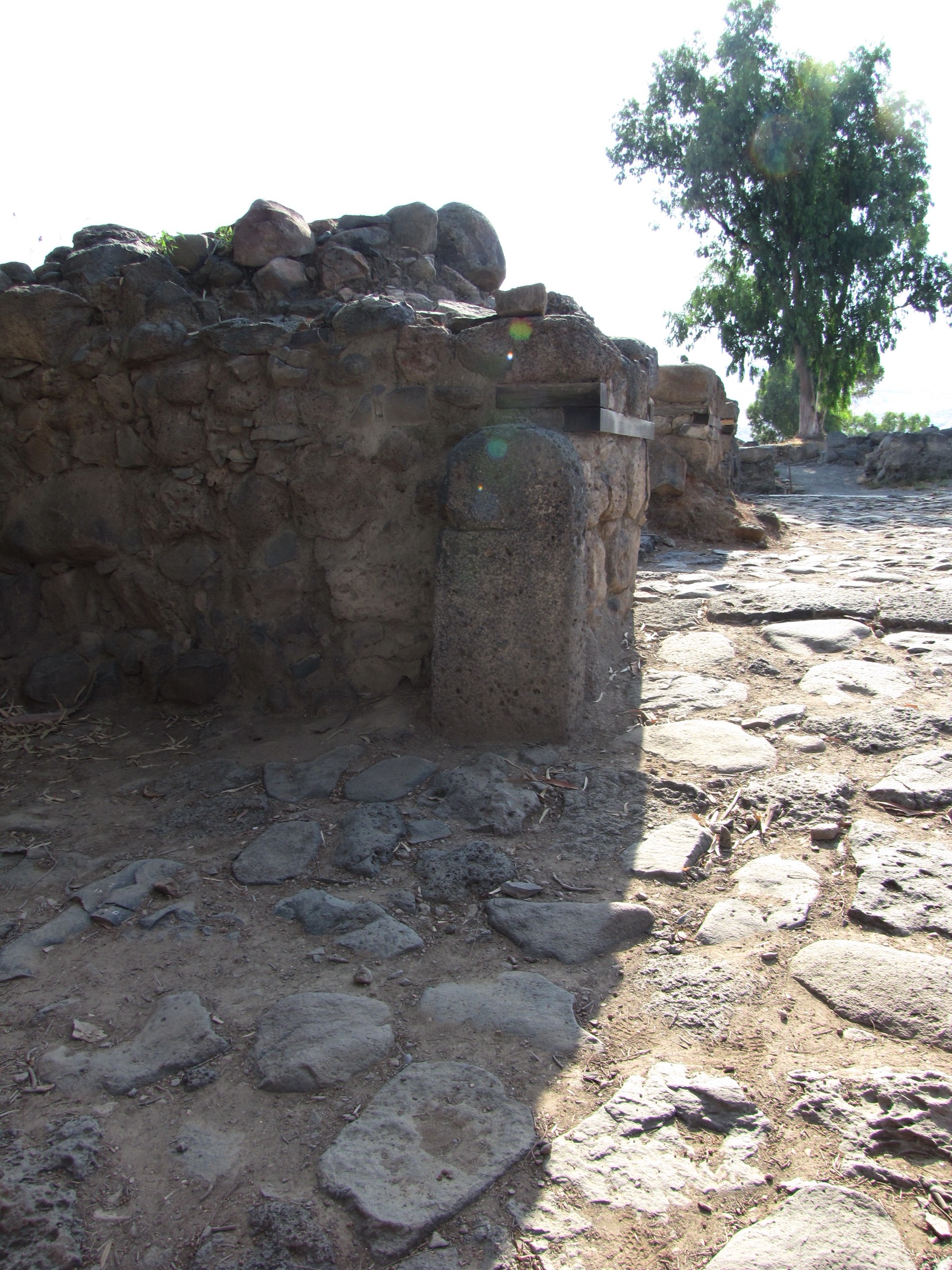 The east gate leading into the Old Testament city of Geshur which was the capital of the kingdom of Geshur. Notice the basalt pavement stones. This is a four chamber gate with two chambers on each side where business and governmental issues were dealt with. One of the chambers can be seen inside the gate on the left side.