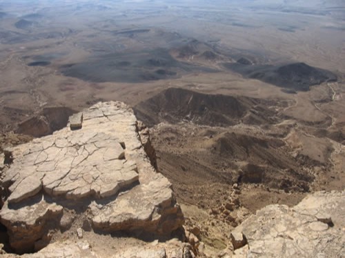 Mitzpe Ramon is a 24 mile long crater that is 5 miles wide and 1600 feet deep or one third of a mile down.