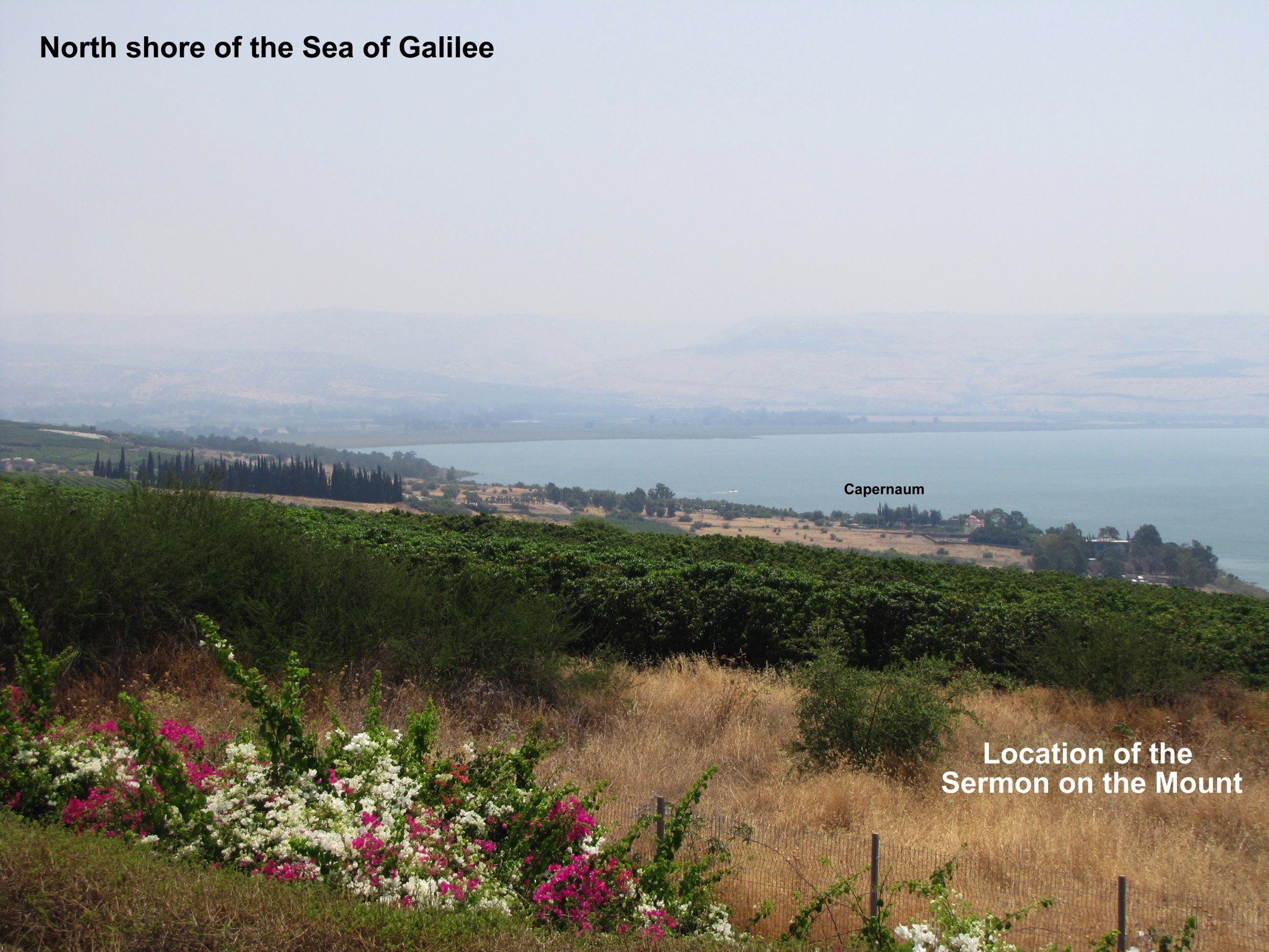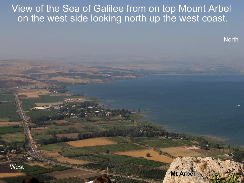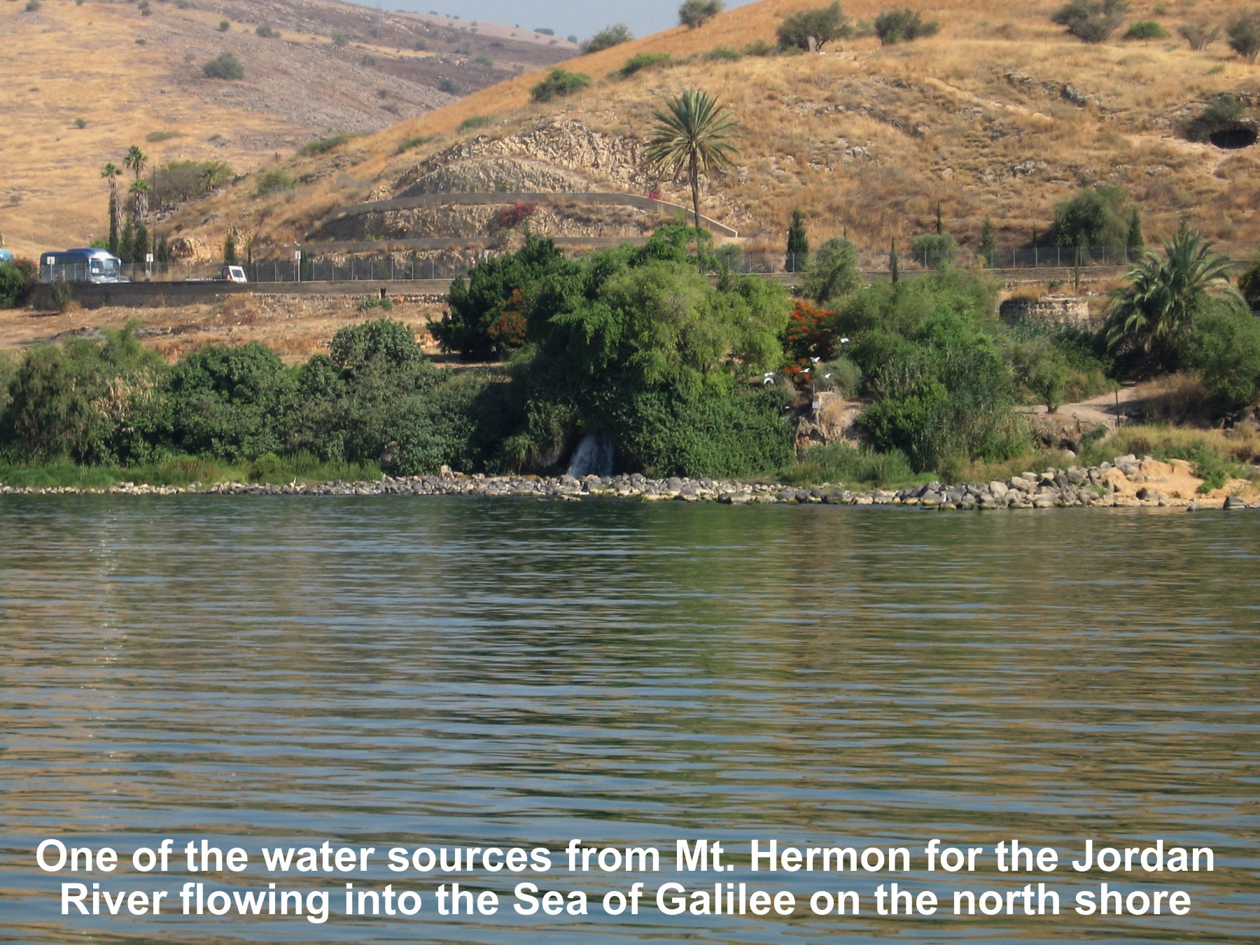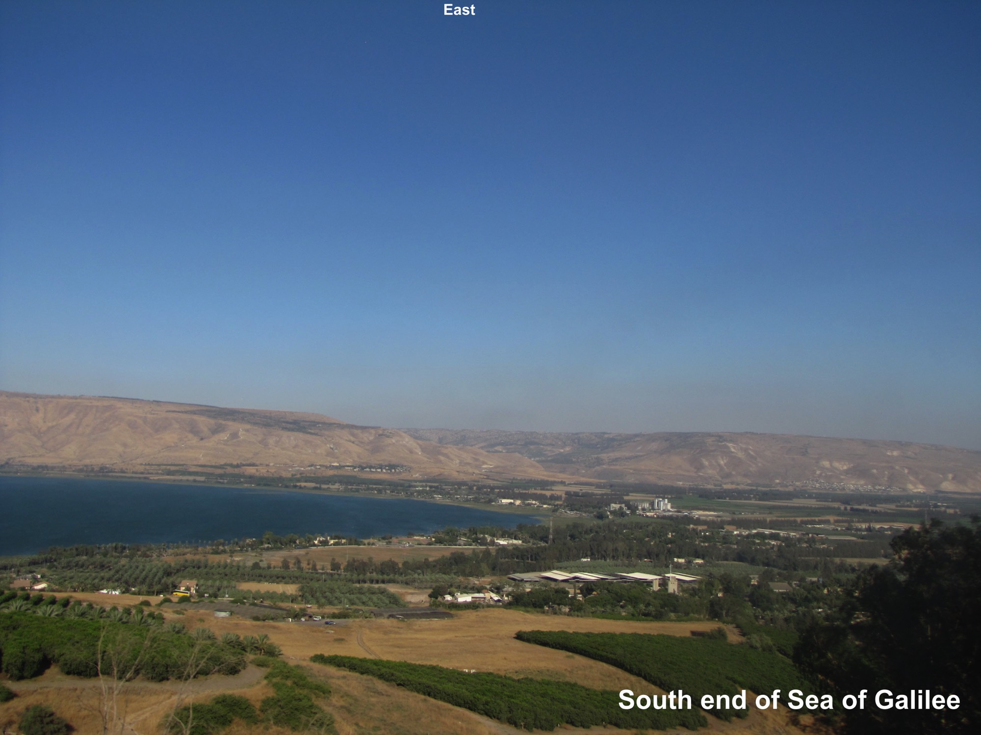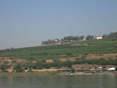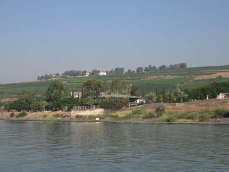 Num. 34:11, mountains on east shore were eastern boundary of the land of Israel;