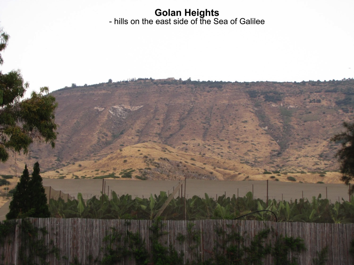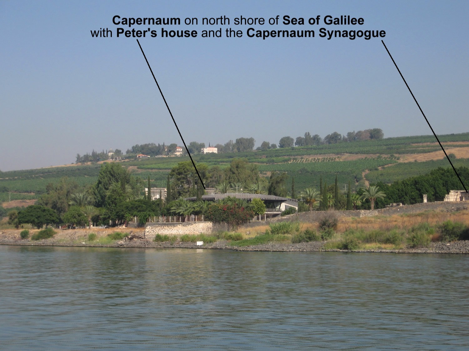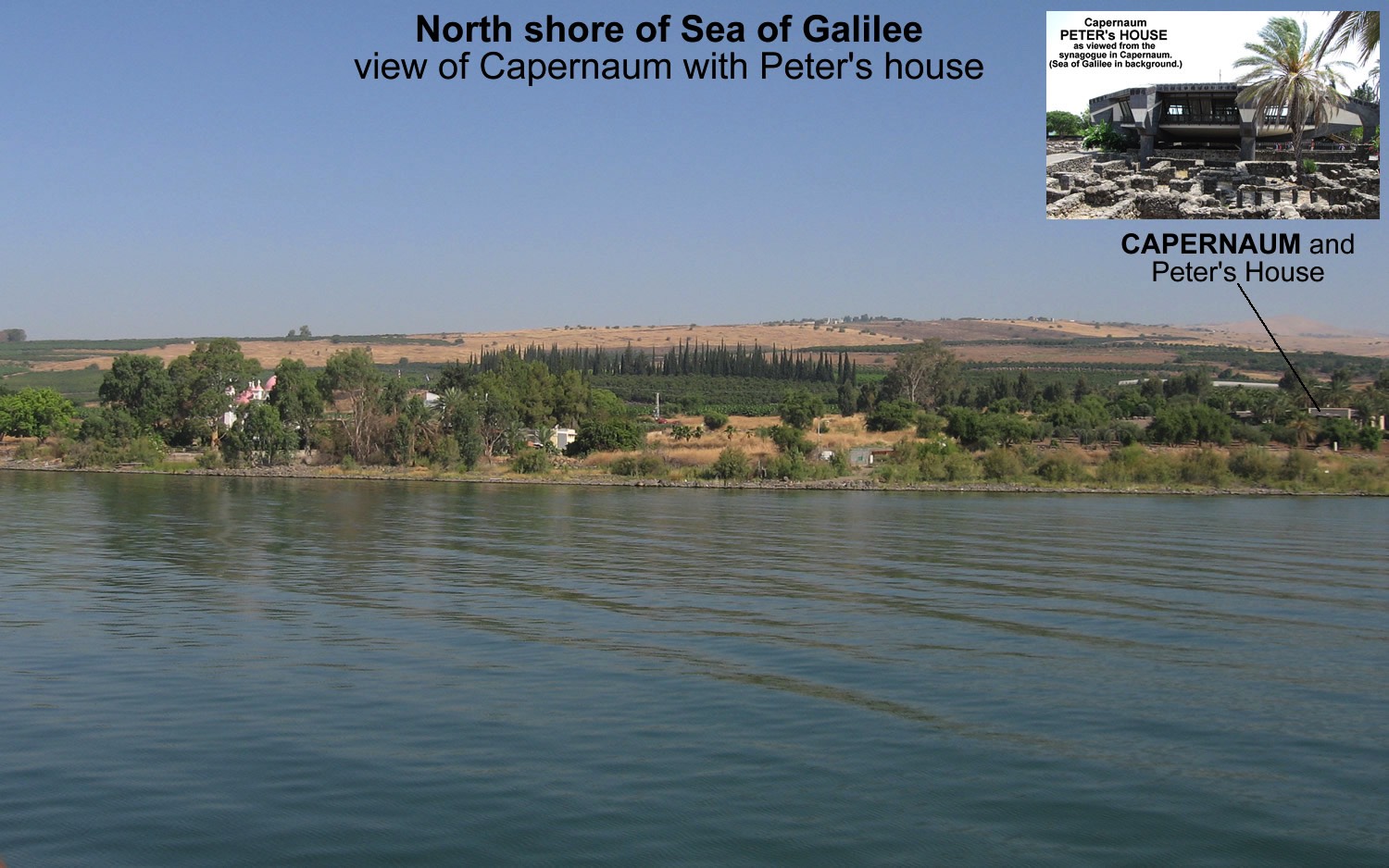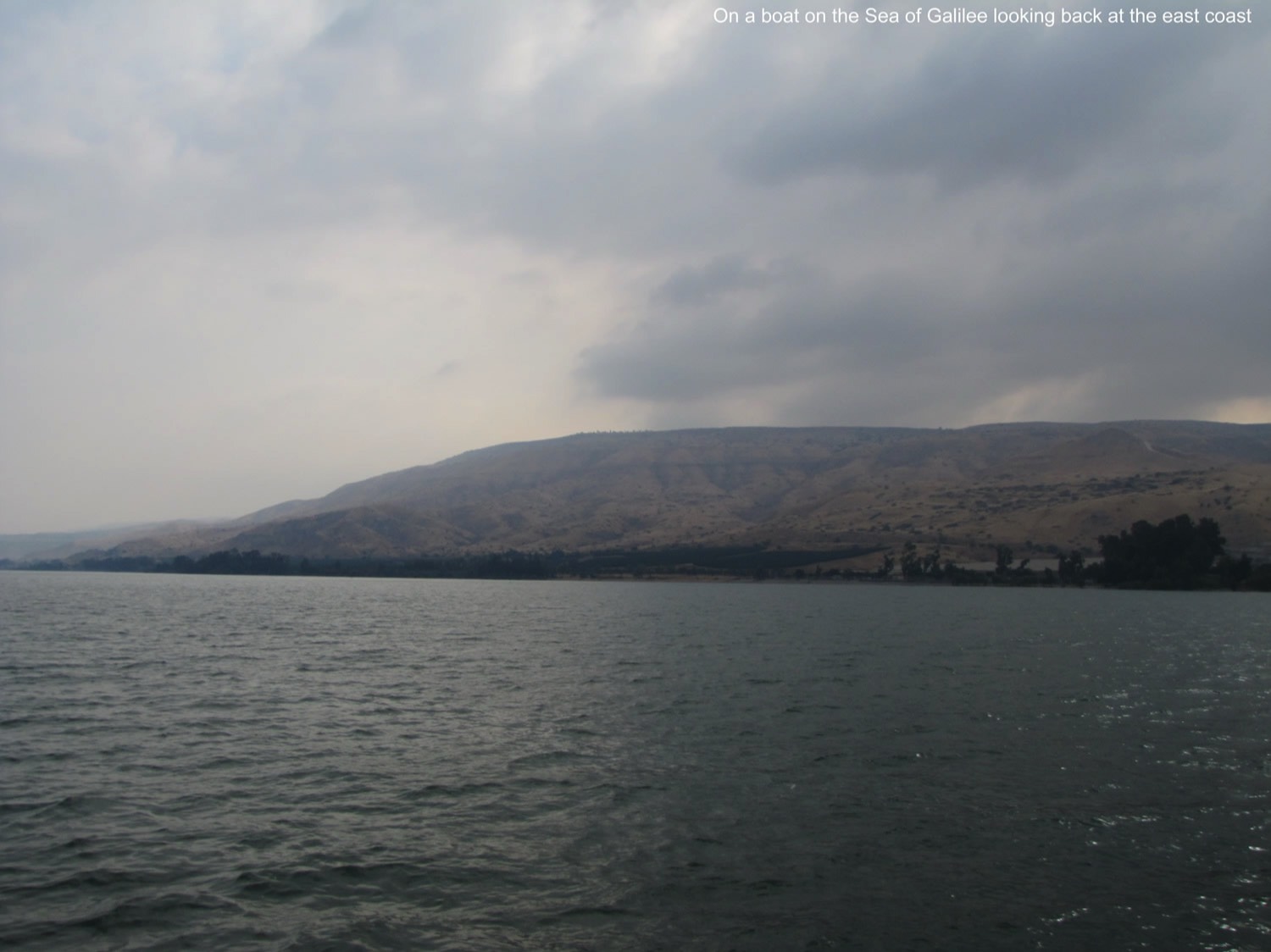 Num. 34:11, mountains on east shore were eastern boundary of the land of Israel;